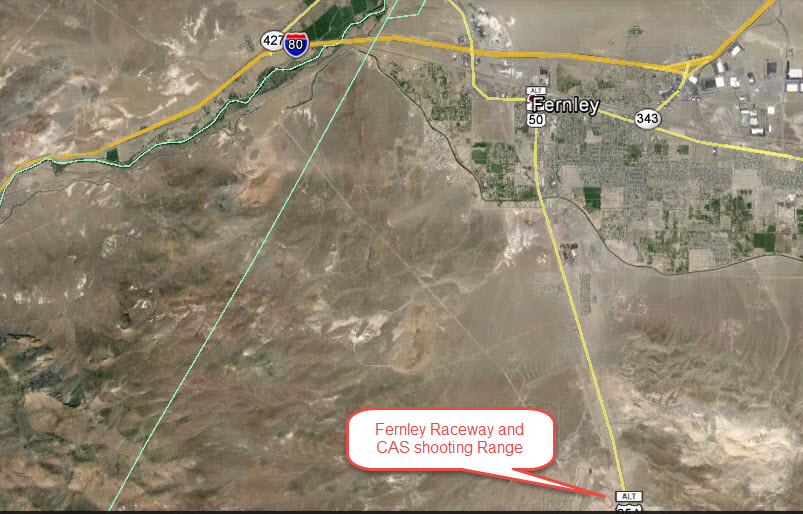 The range is behind the Fernley/Reno Raceway between Silver Springs and Fernley off Hwy 95A